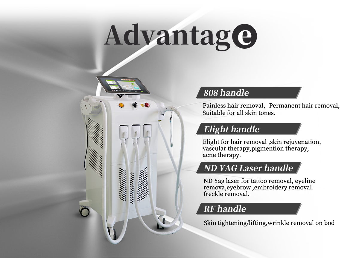 The principle of photother molysis: the light of the shorter wavelength in the output IPL can be preferentially absorbed by the pigment, oxygen and hemoglobin in the skin, without damaging the normal skin, it can coagulate blood vessels, destroy and decompose pigment groups or pigments, So as to achieve the effect of telangiectasia and pigmentation spots.